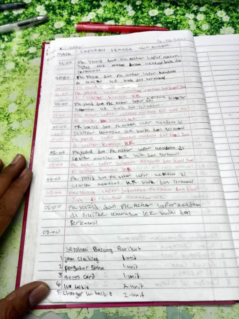 Contoh Buku Laporan Harian Pengawal Keselamatan Andri
