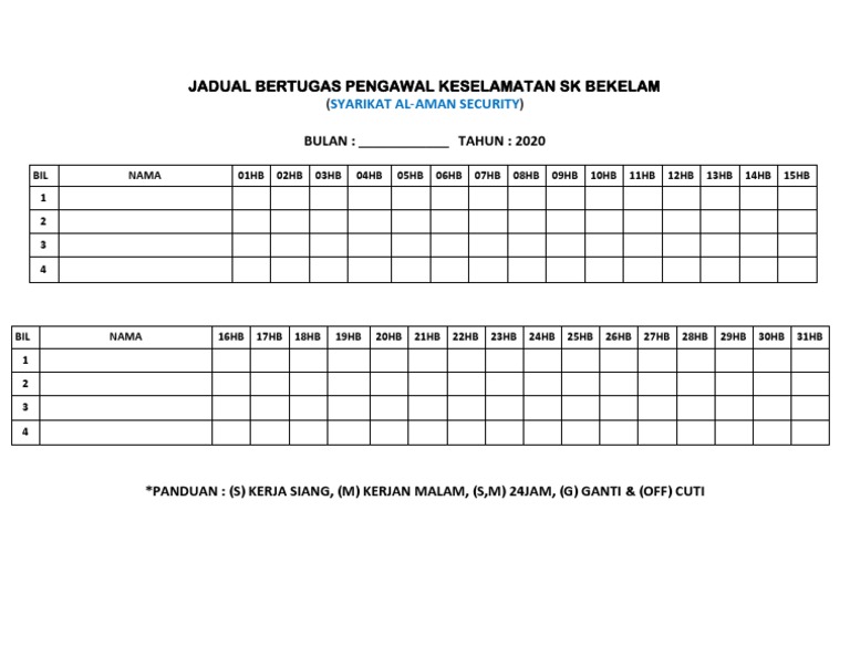 Jadual Bertugas Pengawal Keselamatan Pdf
